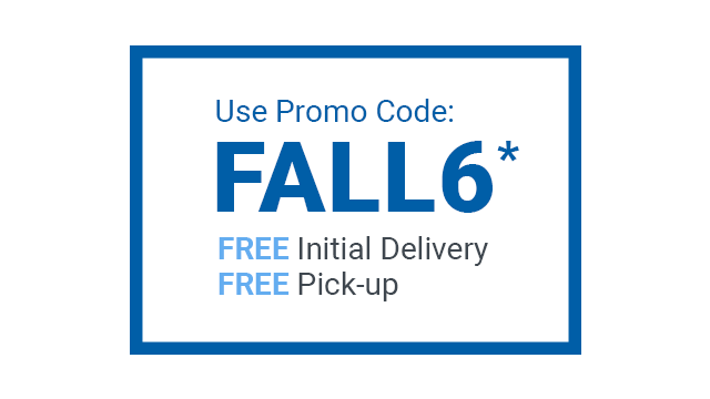 Call (877) 249-7637 or book online and use promo code FALL6* to receive free initial delivery and pick-up on your PODS storage container when kept on-site for six months or more.